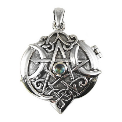 Sterling Silver Heart Pentacle Locket with Rainbow Moonstone