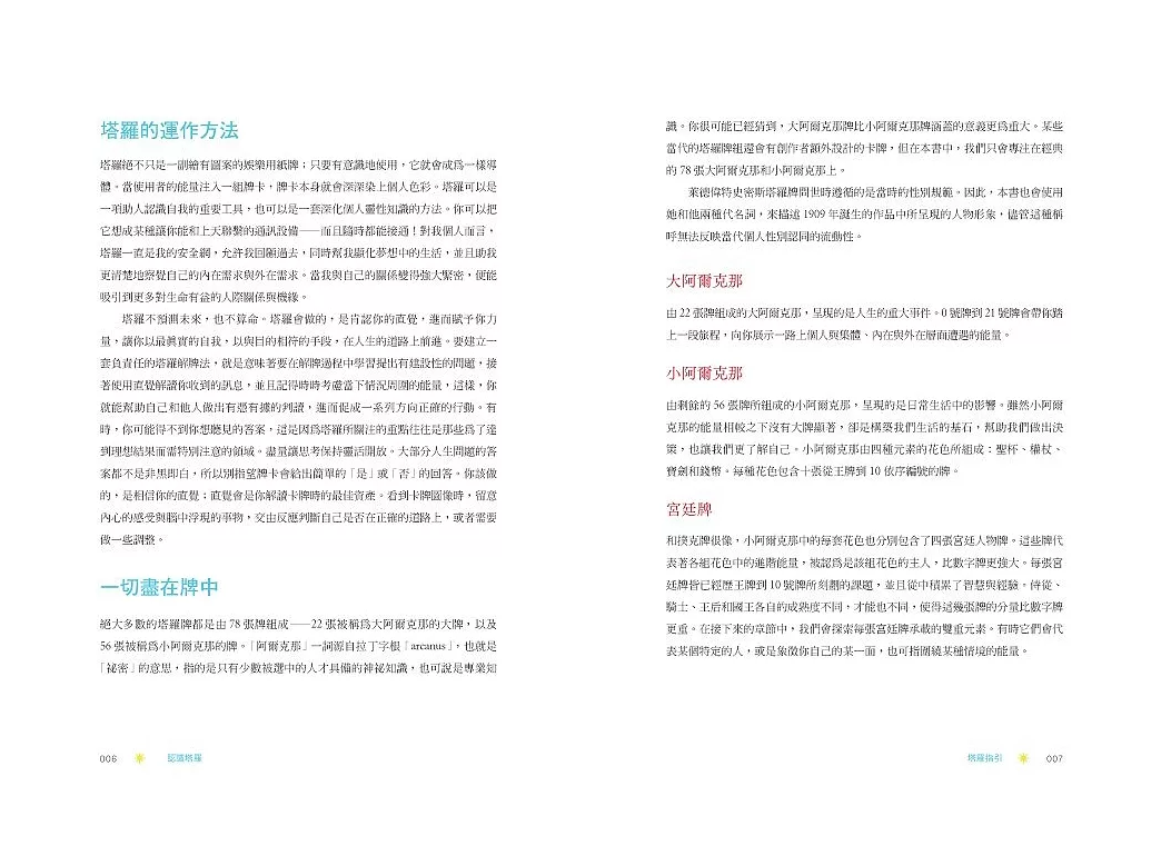 最重要的是,在這一連串過程中,你將發現自己無形中調整了能量、培養了更敏銳的直覺力,從此往後對於牌義解讀、自我覺察更為容易與細膩,而這正是塔羅這套工具可以帶給任何人最珍貴的禮物。