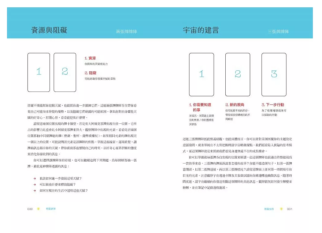 ✩ 新手友善 提供解牌前循序漸進的準備建議,以及提供多種基礎牌陣。