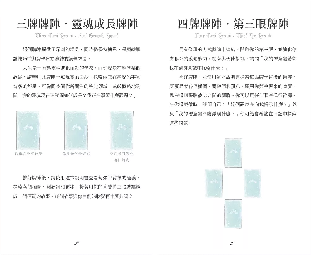 書中詳細說明每張牌的能量、體驗、陰影特質與預兆,幫助你看見自己與宇宙之間獨特的連結,並且獲得清晰的答案,為日常生活帶來深刻的洞察和指引。