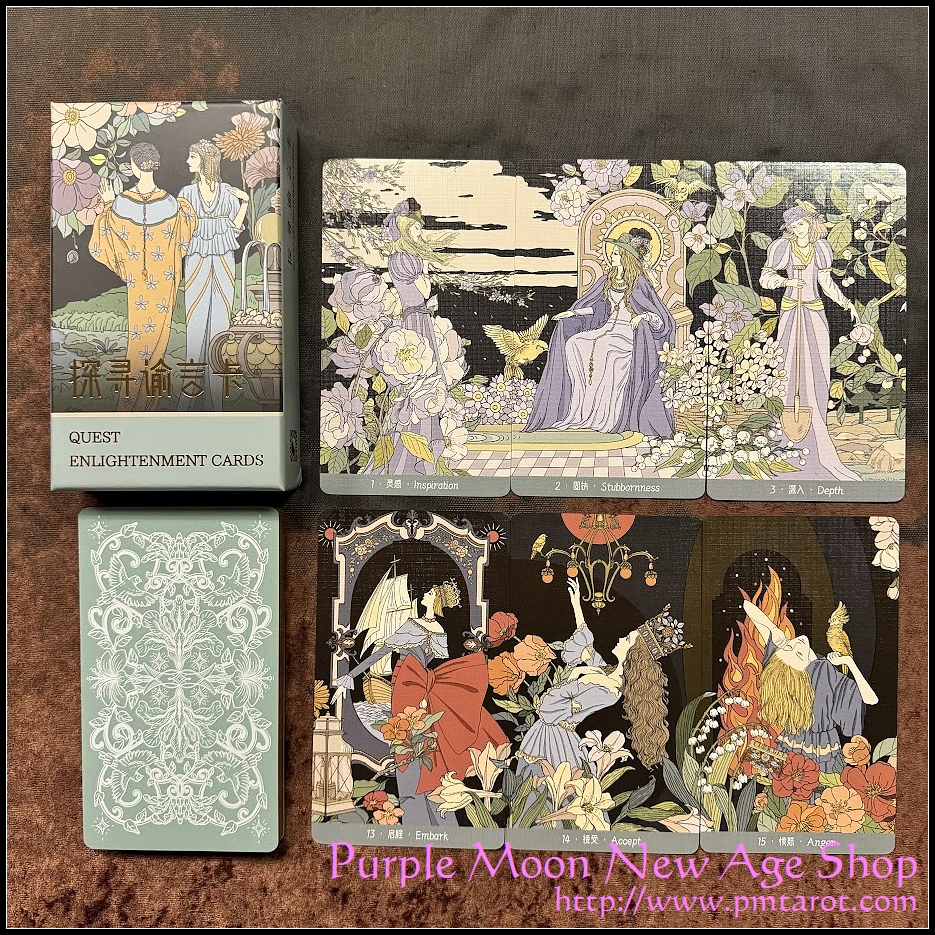 Product Descrpition: Embrace the enchanting allure of the Quest Enlightenment Cards, a beautiful Oracle Deck designed to ignite your intuition and rekindle your inner wisdom. Crafted by the creator of the acclaimed Retro Impression Tarot, this 36-card oracle set merges art nouveau aesthetics with vintage tones, offering a unique visual and spiritual experience.