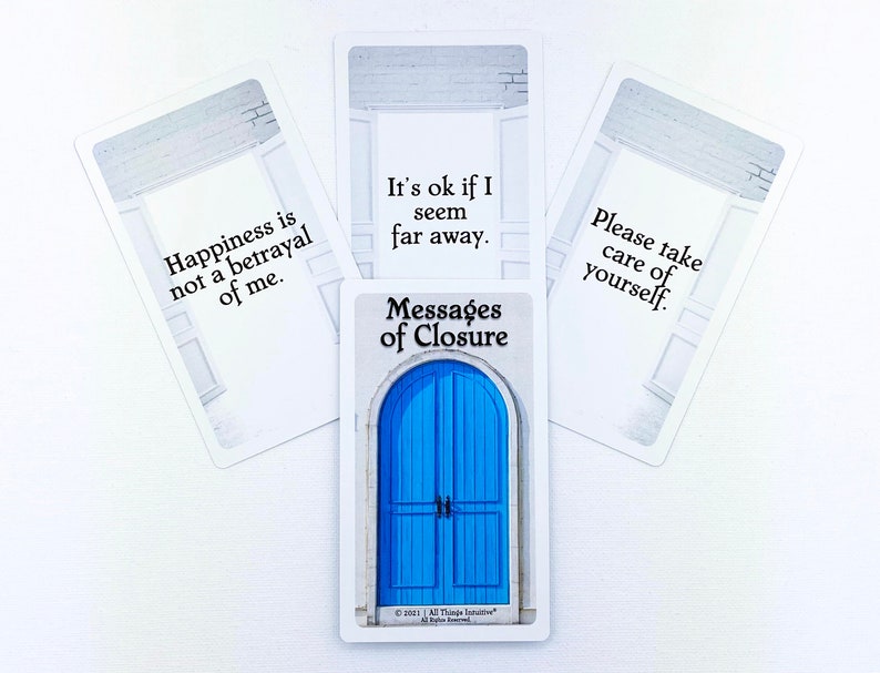 Product Descrpition: Need a message from a departed loved one? Messages of Closure © is a 54-card oracle deck created for those who have unfinished business with someone who has left or has passed away. The person might have been a spouse or significant other, a parent or grandparent, a friend, or anyone. This oracle card deck can help provide the answers you seek, especially if the relationship was difficult.