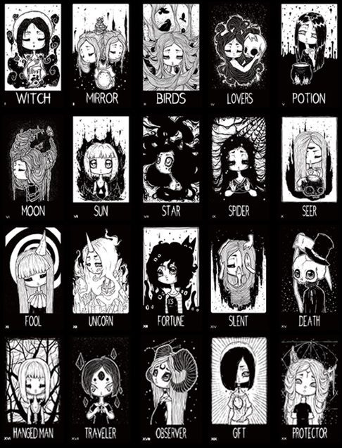 - 28 Oracle cards featuring creepy cute dark fantasy art