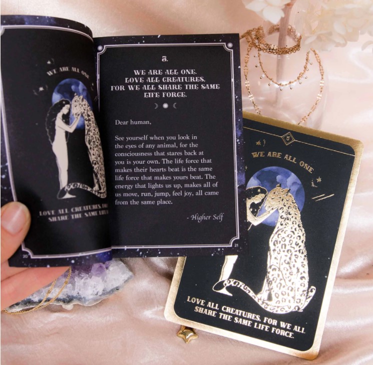 Product Descrpition: Soul Whispers is a 33 card deck with simple messages from our Higher Selves that help us expand our consciousness and rise into the powerful, loving, free version of ourselves. Gentle reminders of love, compassion, gratitude, and magic, to help us grow our self awareness and look within.