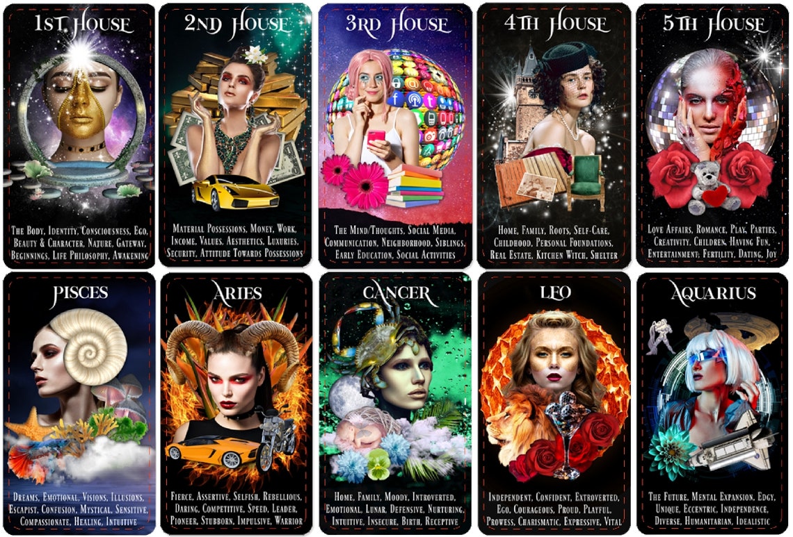 Product Descrpition: This was requested and I truly enjoyed making it! You'll see in this deck Zodiac Signs, Houses, The Planets, Aspects, Moon Phases, and 7 messages From The Universe. I hope you guys enjoy it!