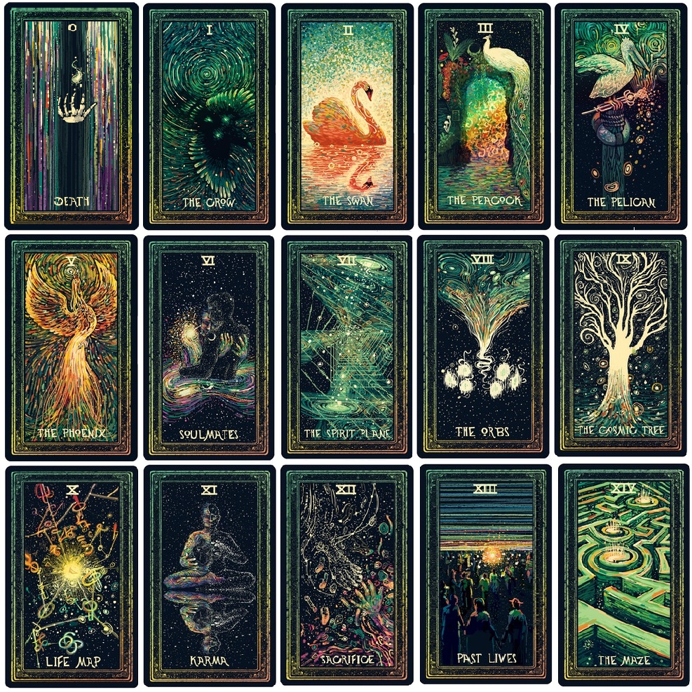 Product Descrpition: The Cards are approximately 2.75" x 4.75" and all share identical backs. The cards are printed with the highest quality inks on durable cardstock and are finished with a matte UV varnish and edged with labradorite blue edges.
