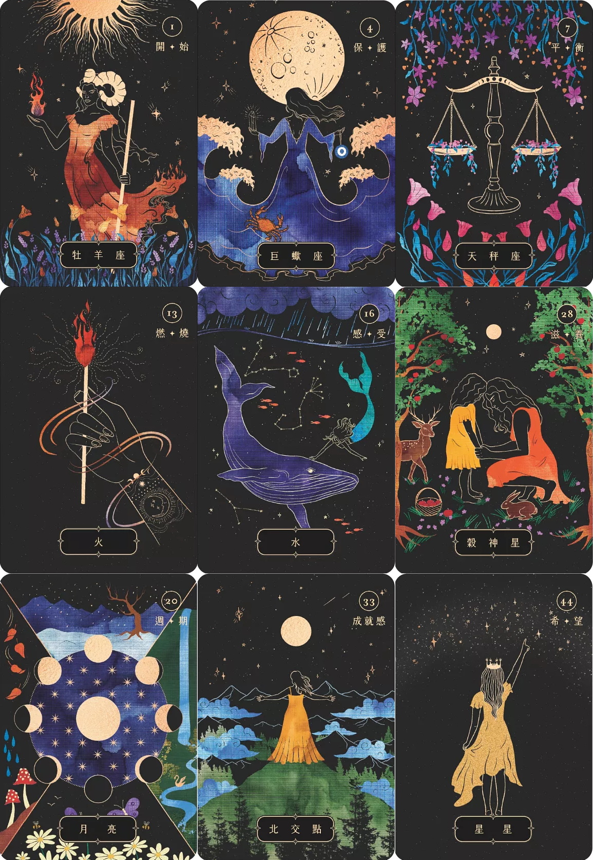 透過直覺讓牌卡沁入心靈深處,更可進階使用,排出專屬星盤,發揮星辰的力量,實現更進化的自我!