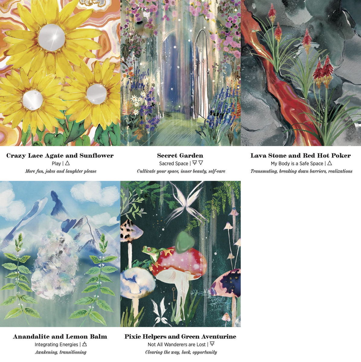 • Plants represent Growth; Flowers: Discovery; Crystals: Depth