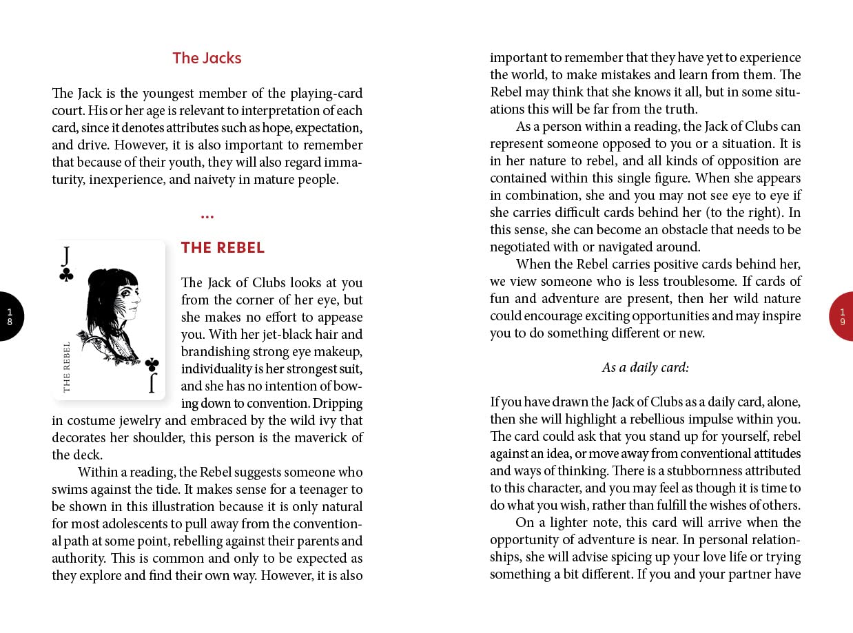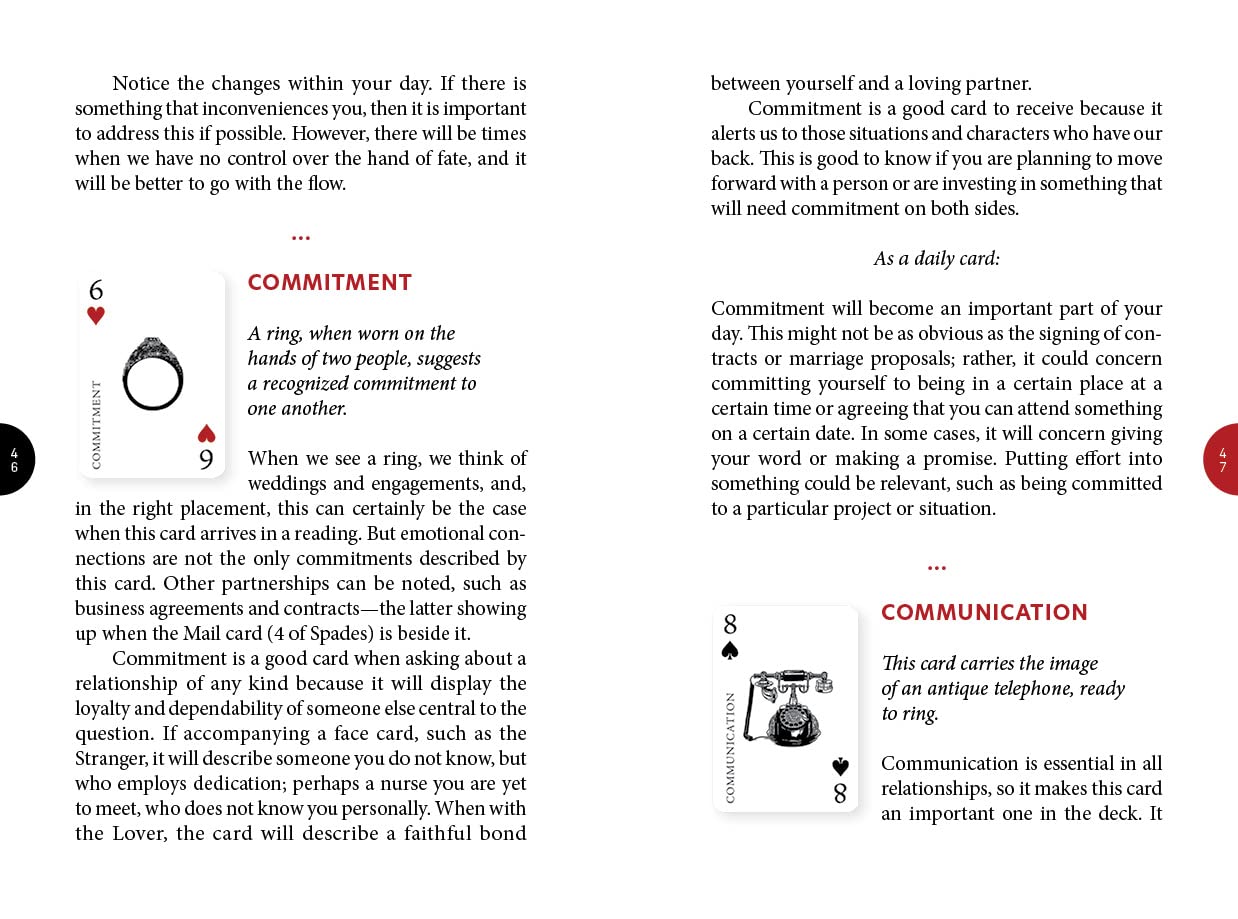 Much has been written about reading with playing cards, and many systems have been shared, but these methods have not always been easy to learn or remember. This 52-card deck changes that with a set of fully illustrated cards that show recognizable symbols with keywords that allow the diviner to read them right out of the box.