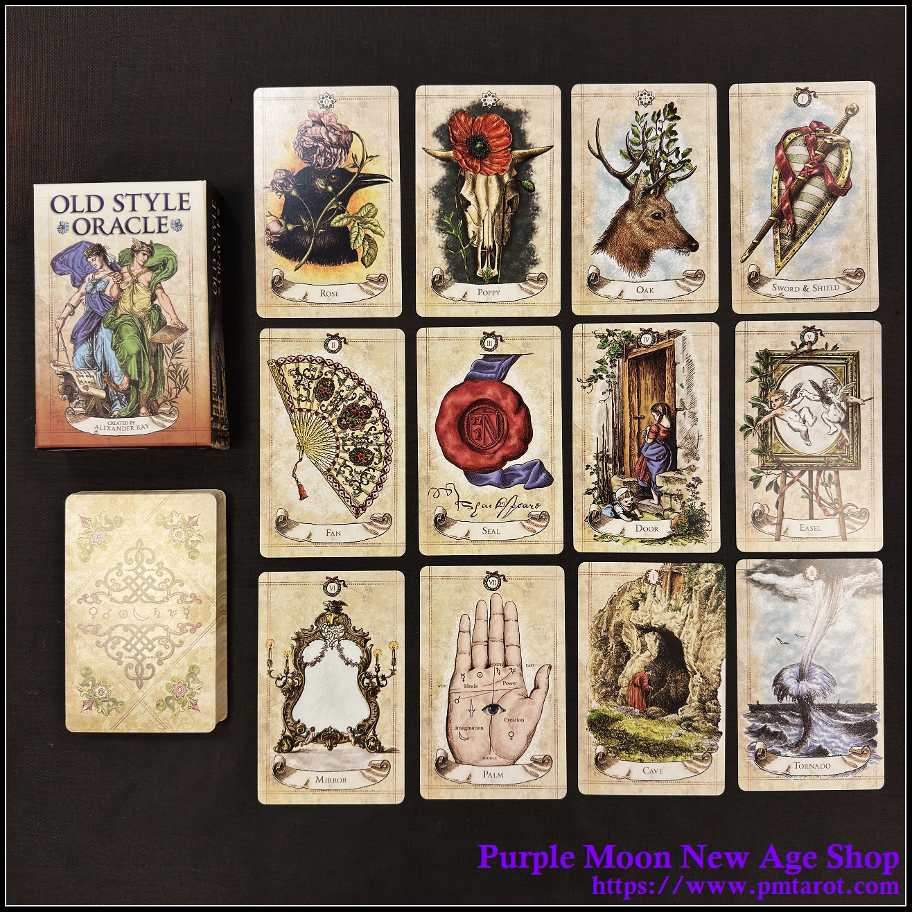 Product Descrpition: In his signature style inspiredby antiquarian book engravings, psychologist Alexander Ray presents Old Style Oracle, a fascinating cartomantic system. The 52-card deck explores the many spheres of life, with archetypal symbols from nature and human experience that act as keys to unlocking subconscious insight. Old Style Oracle was intricately designed as a tool to aid the reader in self-analysis, decision-making, and divination. Each card connects to a category, chakra, and color, helping to reveal emotional, spiritual, and life patterns. The 104-page guidebook provides instructions for several spreads, demonstrating how the interplay of cards creates a narrative that brings clarity to our deepest questions. Set includes a pull out full-color chart with card meanings for easy reference.