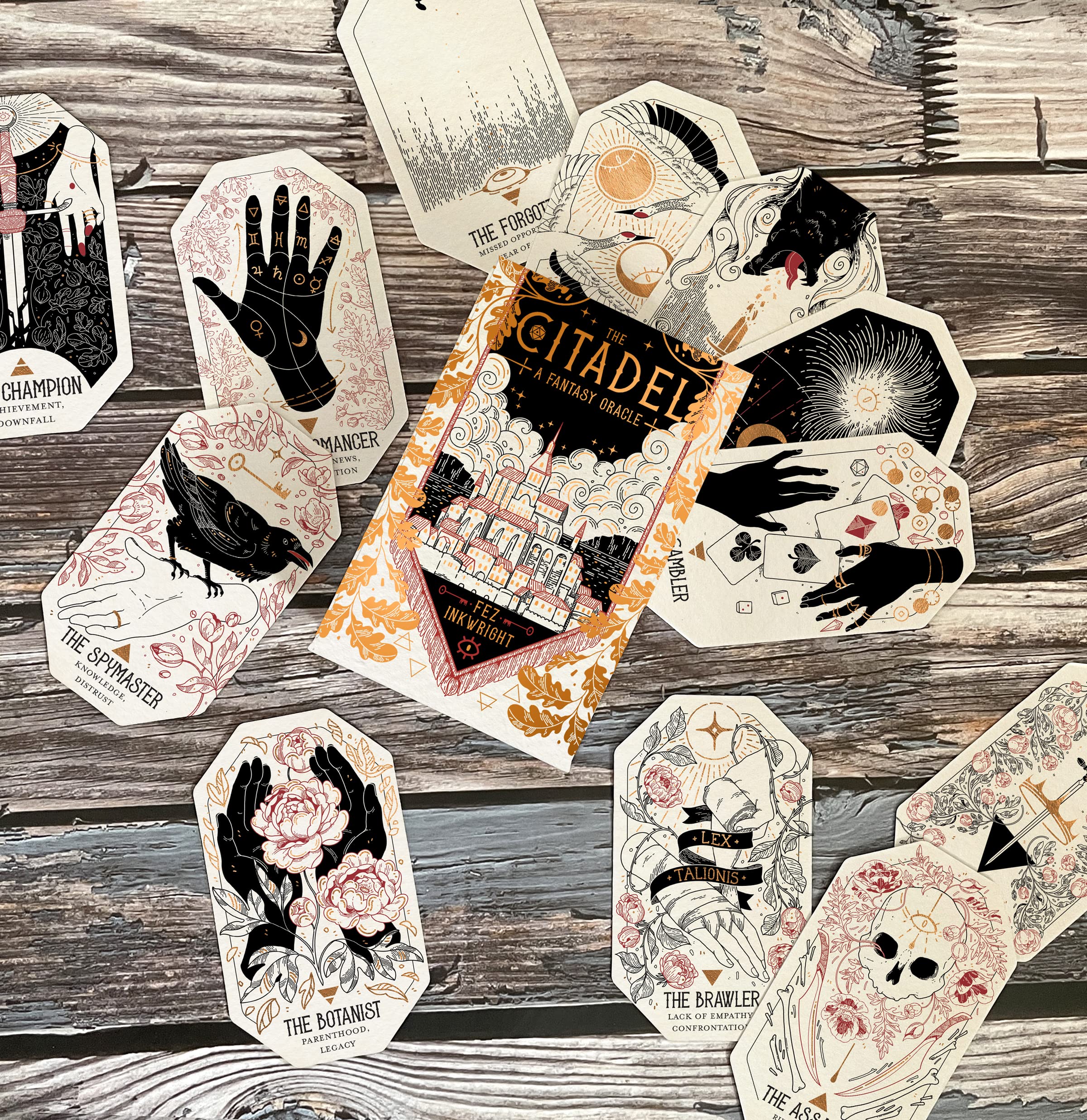 The second deck from bestselling author and illustrator Fez Inkwright, The Citadel is a fresh take on oracle decks that is seeped in the magic of fantasy literature, Tolkien's Middle Earth, and tabletop gaming—a truly unique combination of storytelling and cartomancy! Each of the 60 cards in this deck represents a person living within the Citadel. The guidebook describes different scenes that the reader will encounter while traveling through the city, including the stories of each character and the interpretation of each card.