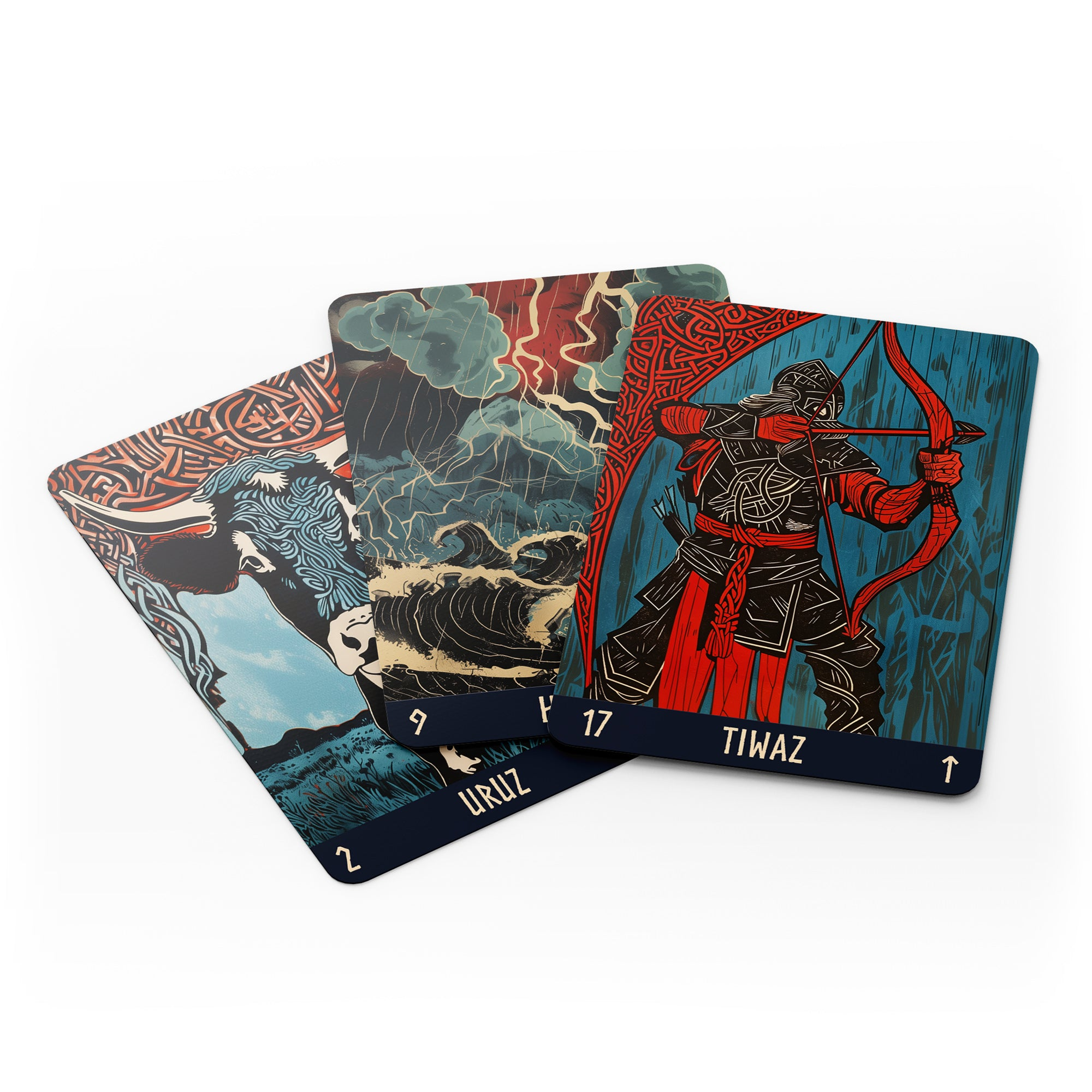 Plunge into the harsh but beautiful norse world. Runes love simplicity and conciseness, which is why the deck has only three main colors - red, blue and black. A rune is not an image, it is first and foremost a symbol.