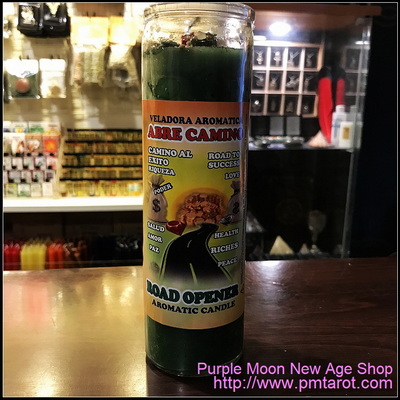 A three color scented jar candle made with essential oils and embedded tokens to aid in prayer and ritual meant to help open your eyes to opportunities and remove road blocks from your life.