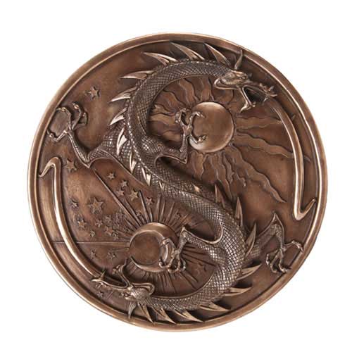 A powerful piece combining Sun, Stars, Moon and Dragon in an Yin Yang symbol. Cold Cast Resin.
