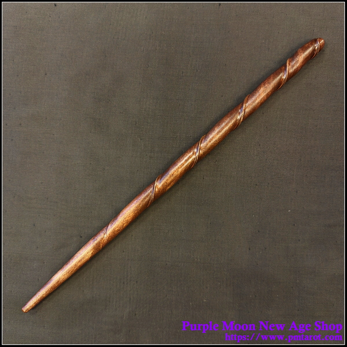 This wand is made from one piece of Birch, making it nice and sturdy for years of spellcasting. The handle has been given a solid dark stain; the tip has had the stain rubbed off, leaving the grain to show through.
