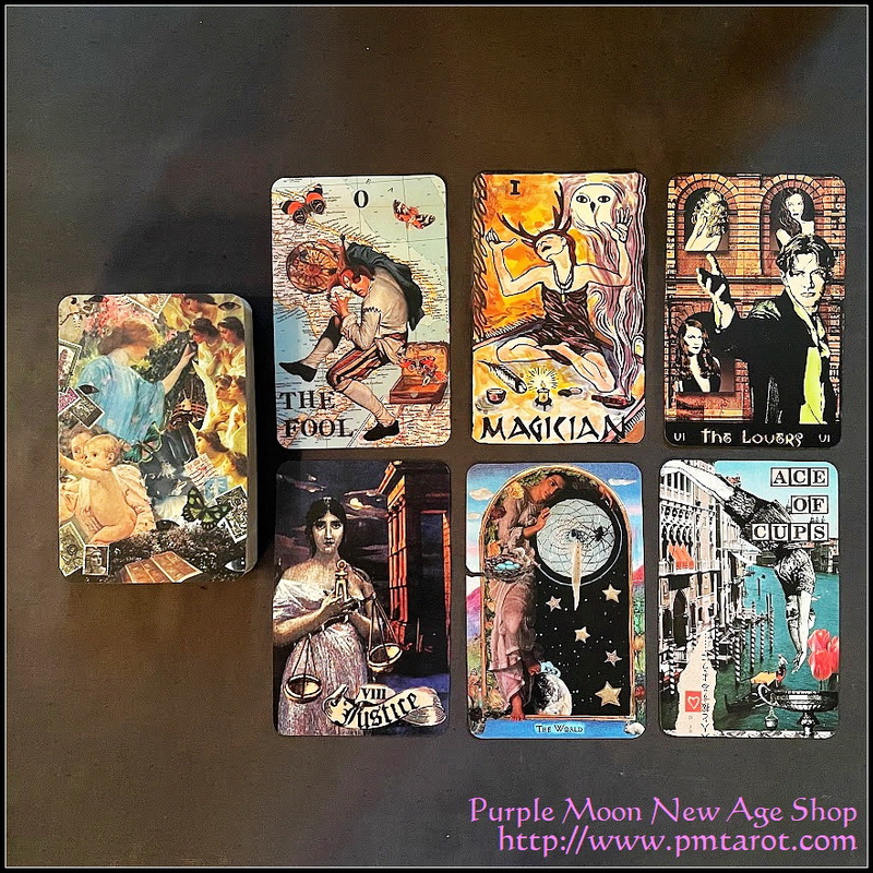 The cards measure 3" x 4.75". There is a collage work on the back of the cards. This deck is a multimedia approach to each artist's relationship and "inner vision" of their respective cards. Each card tells a story visually to help make it's meaning clearer to a novice. The book gives a detailed explanation for each card, usually a scene from a movie that fits the card.