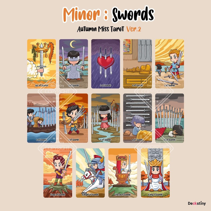 Whether you're a seasoned tarot reader or just starting out, Autumn Miss Tarot V2 is the perfect deck for you. With its cute cartoon characters and vibrant color scheme, this deck is sure to inspire your creativity and intuition. Let the energy of autumn guide you as you seek answers to life's deepest questions, or simply use the deck for fun and inspiration.