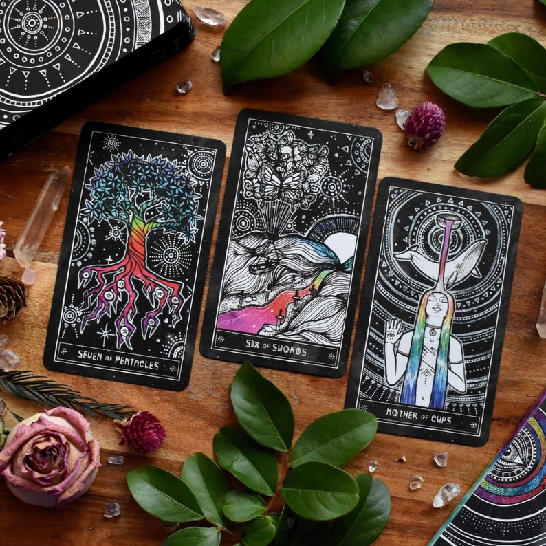 Product Descrpition: Will you answer the call to take a journey through the cosmos of your own mind? Where humankind and nature become one, the strange and unknown blossoms, and the answers you have been searching for will be found. The Cosmic Visions Tarot unifies the cosmos and nature, revealing to our divinity and humanity as two perfectly entwined parts of the same whole. Allow this journey through our light & shadow, our planet & the cosmos speak to your higher self, create clarity for you in times of uncertainty and create space for expansion and growth.