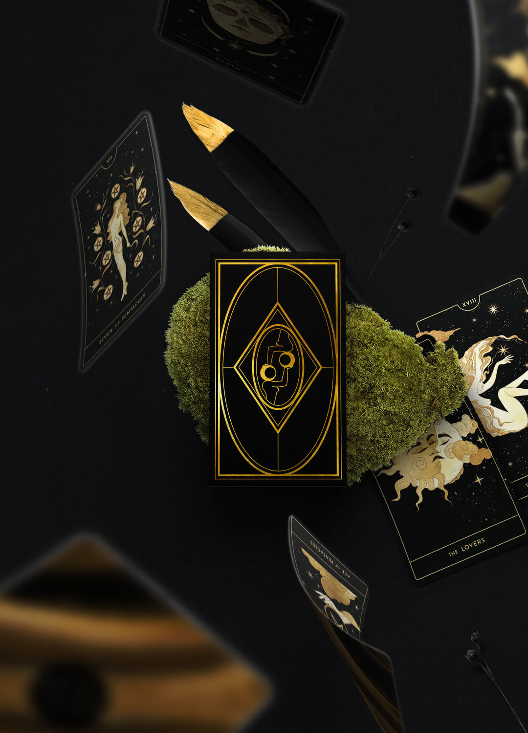 - 78 Cards (Major & Minor Arcana) with gold foil on the cards' faces
