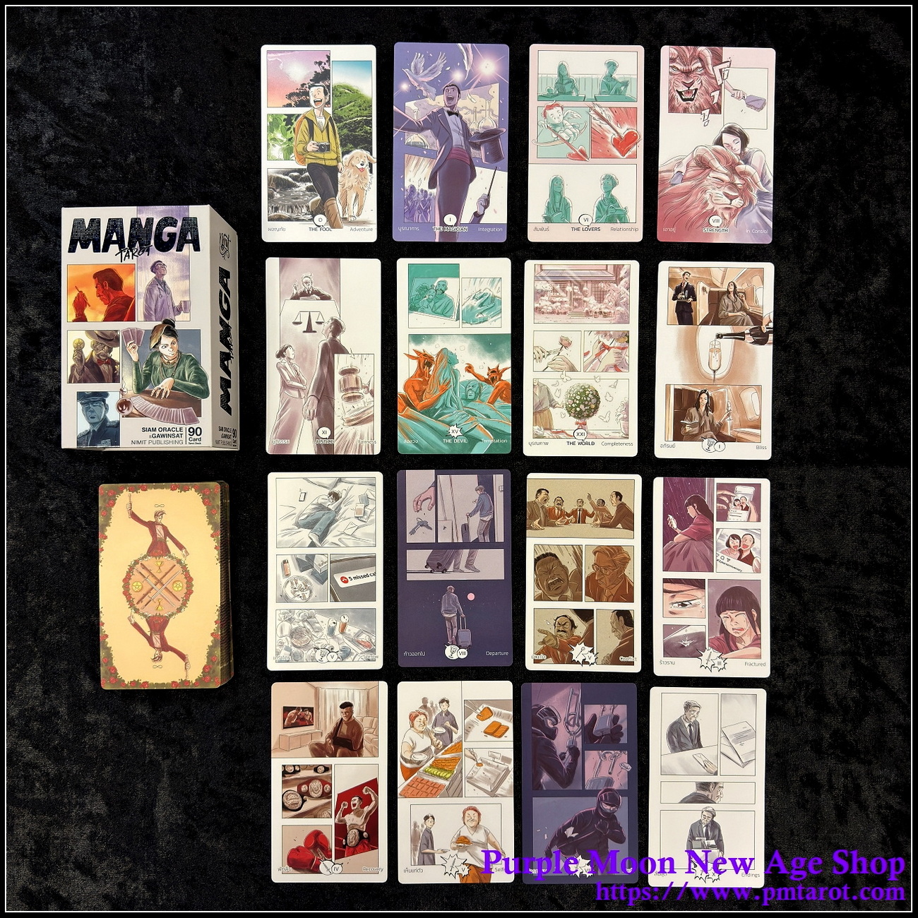 Product Descrpition: Step into an intuitive and magical journey of self-discovery with the Manga Tarot, a 90-card Tarot based Oracle Deck infused with the expressive power of manga storytelling. Each card captures human emotion, everyday experiences, and symbolic moments, offering guidance that feels both familiar and profound. Designed for seekers of clarity, this deck speaks to the heart with images that blend modern life and timeless archetypes, making every reading deeply personal.