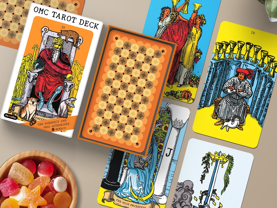 The OMC Tarot is a catspiration to prove their superiority over human beings. Who has never been the servant of these little balls of fur, sometimes endearing, sometimes tyrannical? In any case, they have decided to cover all the mysteries of the Rider Waite Smith Tarot, which will make it easier to read for lovers of the classic RWS. Are you ready for purr therapy?