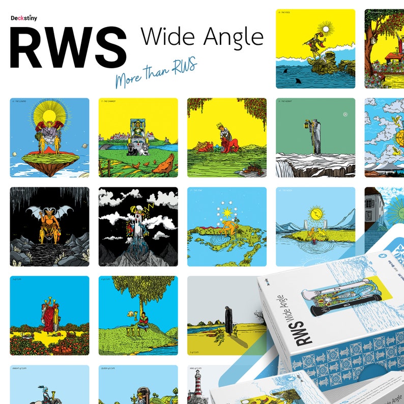 Wide Angle Tarot takes the familiar Rider Waite Smith Tarot and turns it into something truly remarkable. Think of it as using a special lens that lets you see beyond the edges, revealing breathtaking details and stories that were previously unseen. With every card, a world of beauty is waiting to be discovered, inviting you to explore the Tarot in a way you've never imagined.