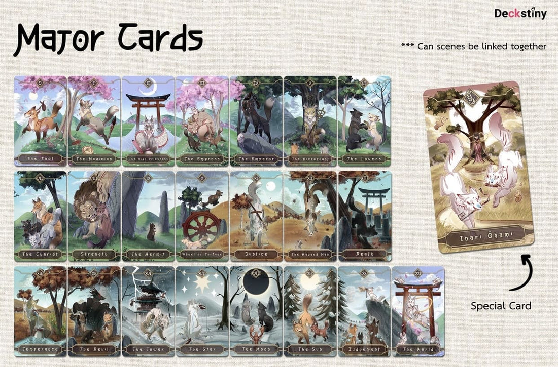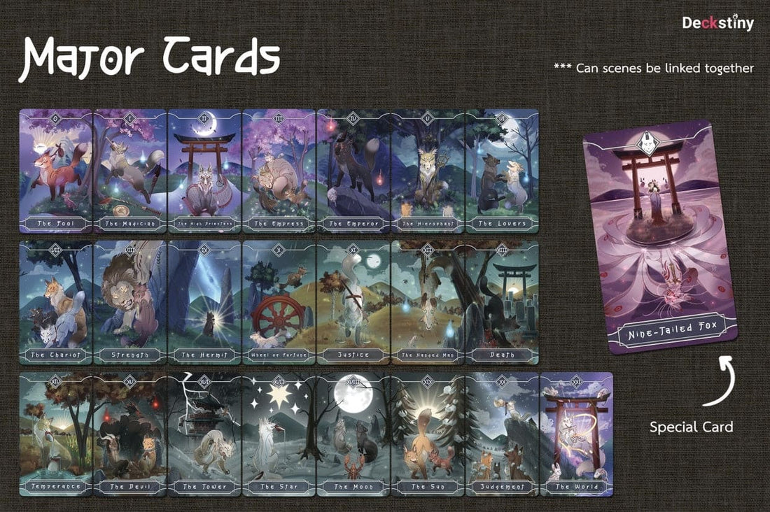 Unlock your inner wisdom with the Seasonal Fox Tarot! This stunningly illustrated tarot deck bridges ancient Japanese animal mythology, modern Asian art and a unique indie design for an unforgettable tarot experience. Whether you're just starting to explore tarot or are a seasoned reader, the Seasonal Fox Tarot offers you a fresh way to explore meanings and knowledge. Bring the magical world of Japanese sacred animals into your readings and discover what the future holds for you!