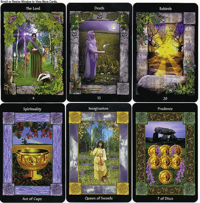 The imagery of the cards is designed to work on a number of levels, serving as a tool not only for divination but to facilitate meditation, personal growth, and spiritual development. The major arcana is modified somewhat to fit the pagan theme of the deck. For example, "The Fool" becomes "The Green Man," "The Hierophant" becomes "The Druid," and "The World" becomes "The World Tree."