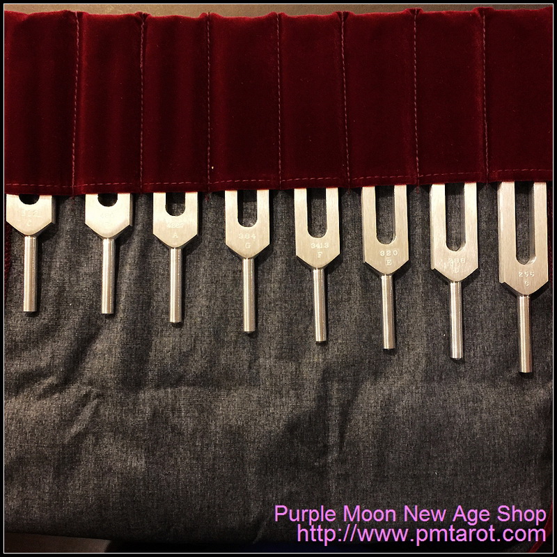 The Solar Harmonic Spectrum is the full octave of tuning forks in a beautiful velvet pouch.