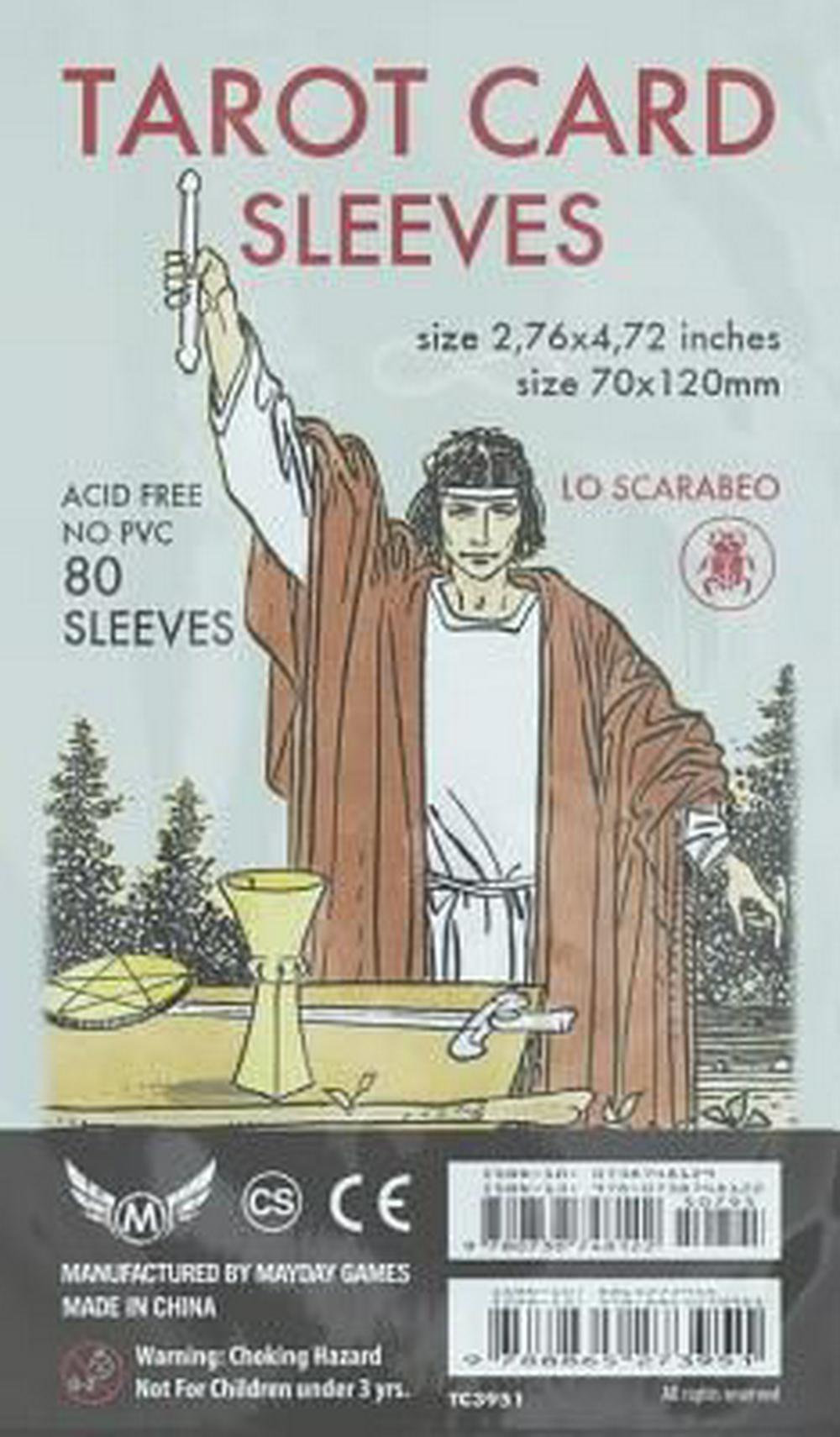Safeguard your tarot cards against scratches, moisture, and warping with these protective sleeves. Light enough to allow for shuffling and reading, but durable enough to offer protection, these sleeves will extend the life of your favorite cards. Pack includes 80 card sleeves.