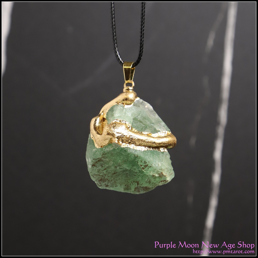 | Crystal Pendant - Green Fluorite w/gold gilt Red Jasper |