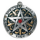 貨品介紹: Surrounded by the five elements, written in Latin, this heraldic style Pentagram can be worn to achieve stability and inner harmony.