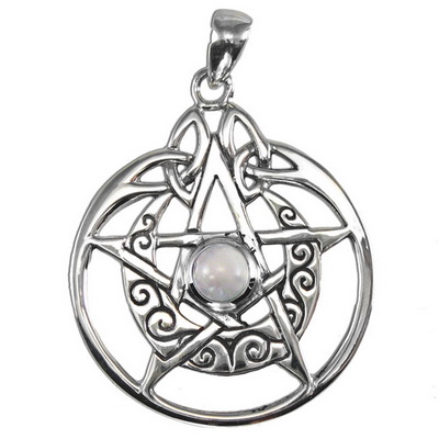 | Sterling Silver Crescent Moon Pentacle Circle with White Moonstone |