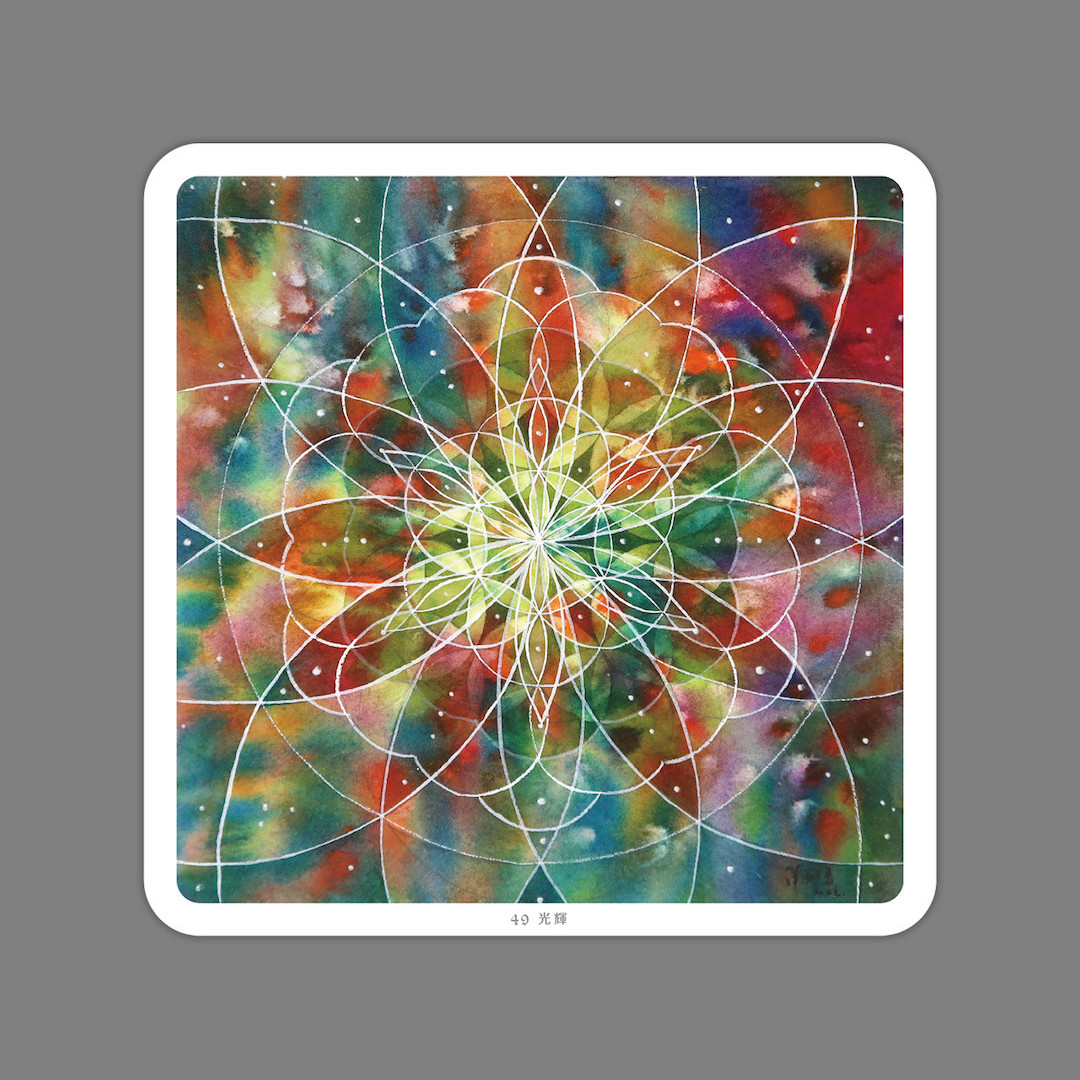 生命之花卡是一套結合生命之花圖騰與色彩能量的藝術創作牌卡,包含 50 張牌卡與 1 本指導手冊。
