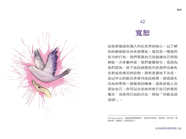 ✦34張粉紅色心輪牌卡:確定造成你情緒低落的問題起因。例如遺棄、難以自我肯定、孤獨感、自我破壞等。