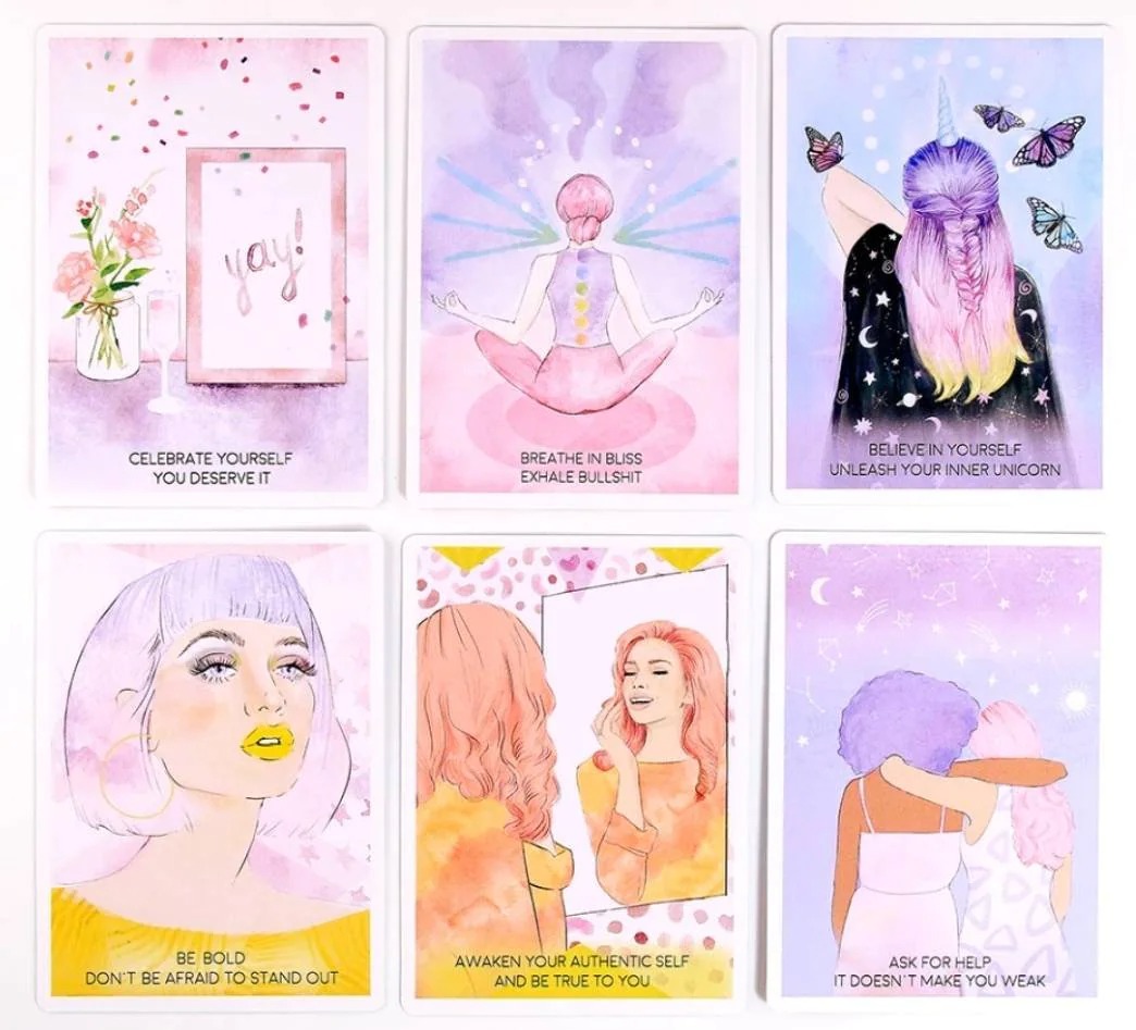 This 44-card oracle and full color guidebook contain a fun and playful approach to making friends with your inner mean girl to help you build confidence, resilience, and reclaim your personal power. Whether you’re feeling stuck or needing a motivational kick in the butt this guidebook will help you to believe in yourself, overcome overwhelming negative thoughts, and encourage you to manifest your wild and crazy dreams. This tool for self-discovery embodies empowerment, equality, courage, freedom, sisterhood, and the space to be your authentic self, unapologetically.