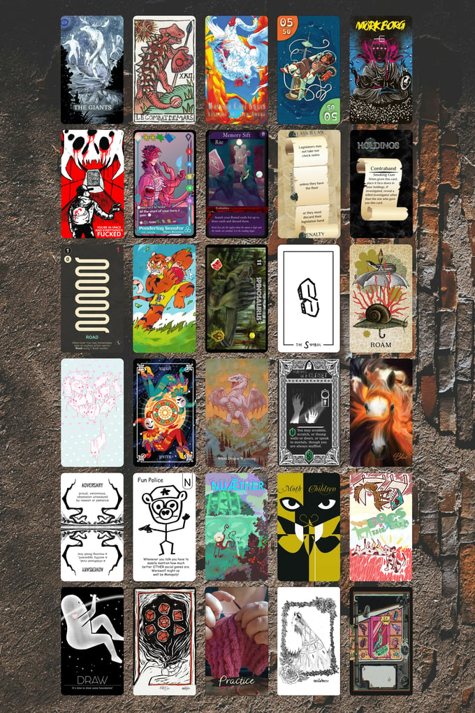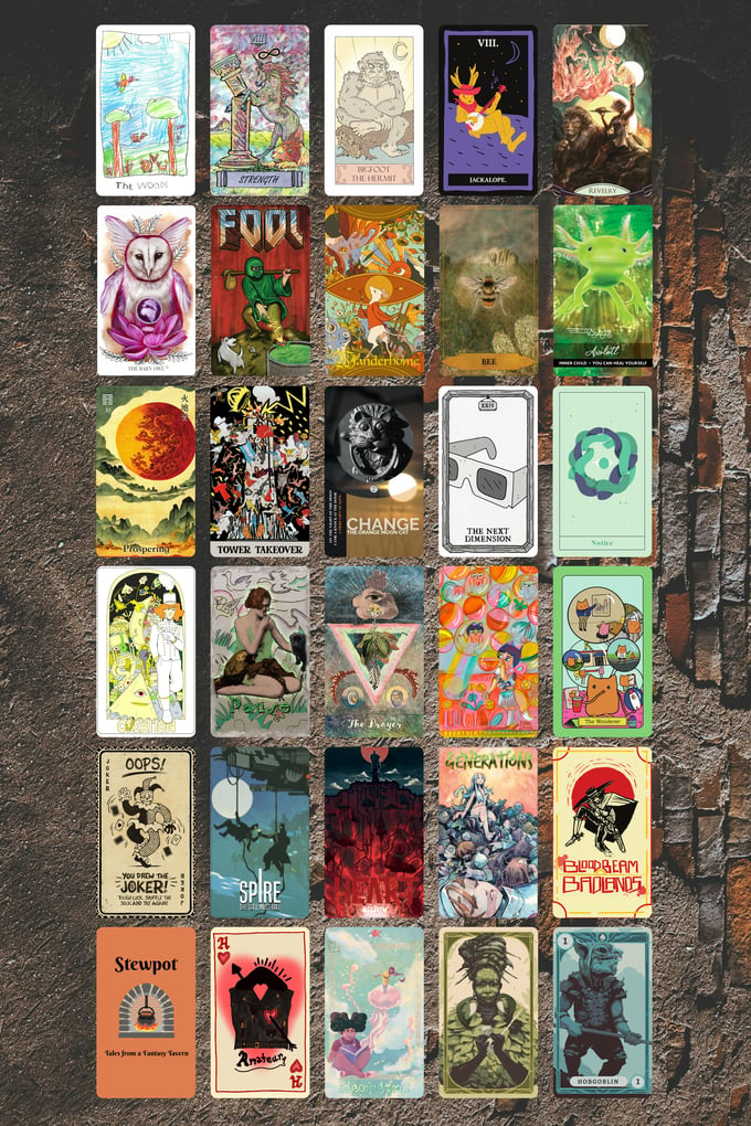 Each deck is made up of cards licensed from their original decks, cards made of art licensed from artists, or original art made just for this deck. A full listing of credit for each card can be found throughout the project, separated out by deck, including links to their work and where you can purchase the original decks.