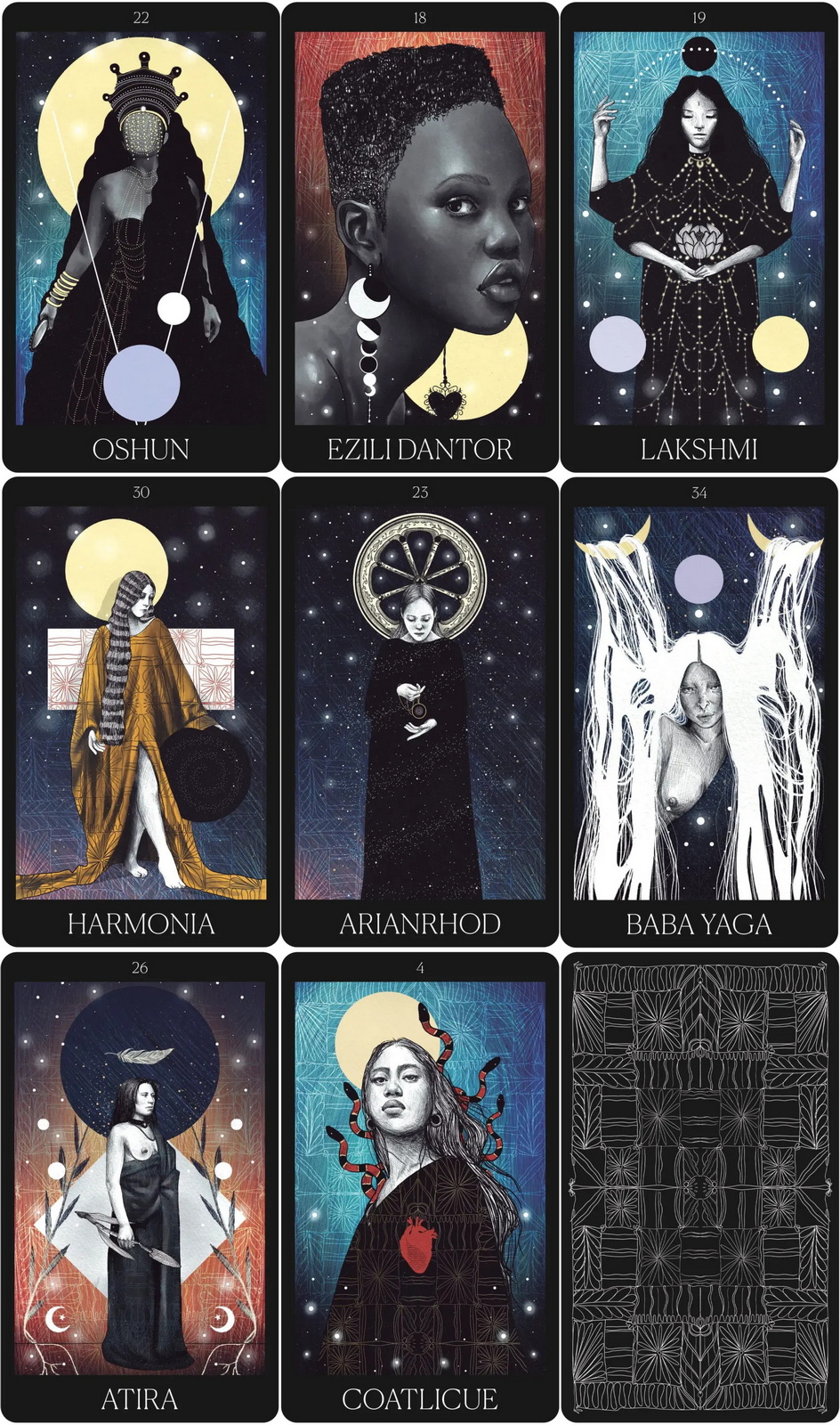 Traditional maidens, mothers and crones as well as enigmatic heroines and gender-fluid spirits dance through this deck. Celebrate the many faces, bodies and colors of the feminine, while witnessing your own dynamic beauty and divine potential in their reflection.