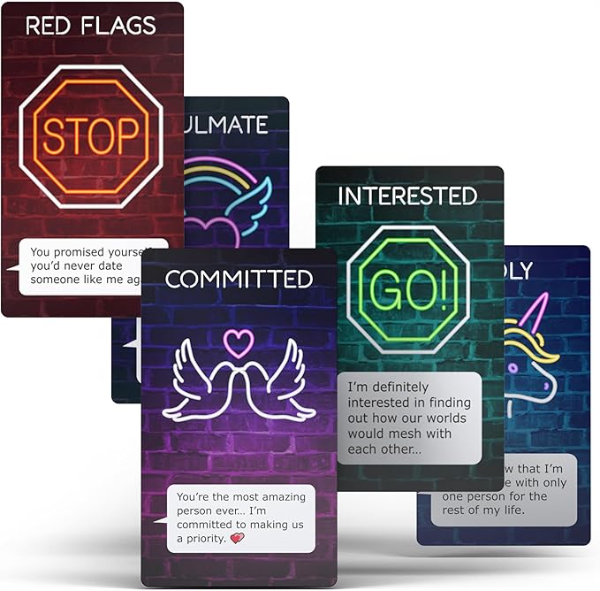 The Neon Love Oracle Deck by Metaphoracle is designed with an intuitive symbol-coded divination system that is easy to understand, providing instant love confirmation readings with crystal clarity. Use this deck for instant relationship compatibility readings and love forecasts, and unlock the answers and hidden truths that you've been looking for in your love life. The meanings on the cards eliminate the need for a guide book or complicated spreads. Bring this little oracle deck with you on your next date! These unique ice breaker cards are designed to cut through the superficial world of dating and get straight to the point.