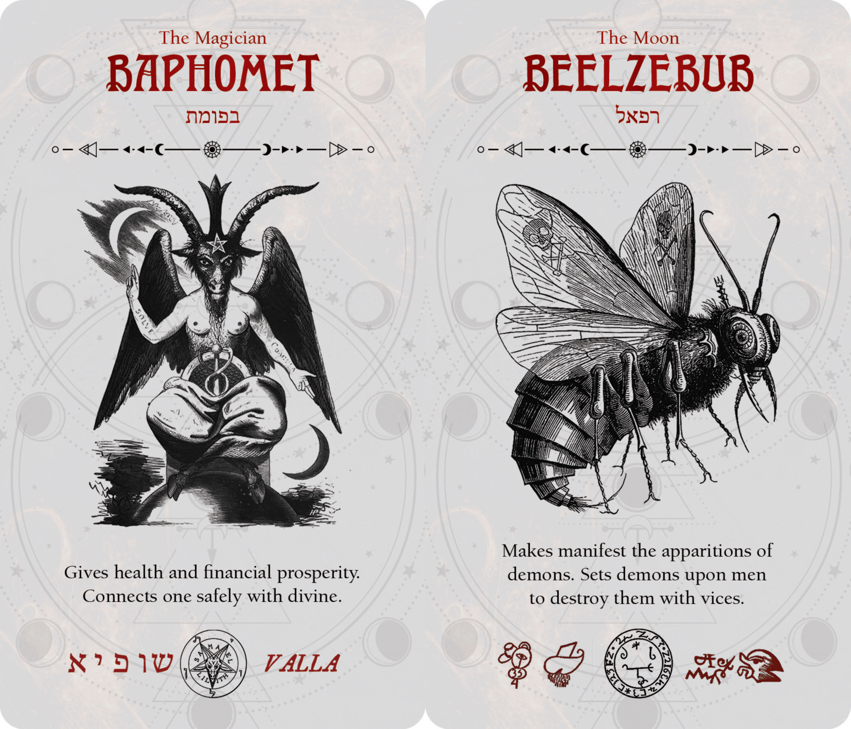 The first tarot deck to faithfully adhere to the Solomonic principles of demon conjuration, Occult Tarot Pocket Edition allows practitioners to discover the power of ancient daemons and learn to tame the beasts that wander between the physical and spiritual worlds.