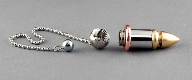 Multi-Metal Chamber pendulum. 1 3/4 inches long. Bullet Chamber pendulum design.