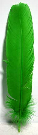 White turkey feathers brightly dyed. Simply trim the end at an angle to make your own old-fashioned ink pen. Approx. 12" long.
