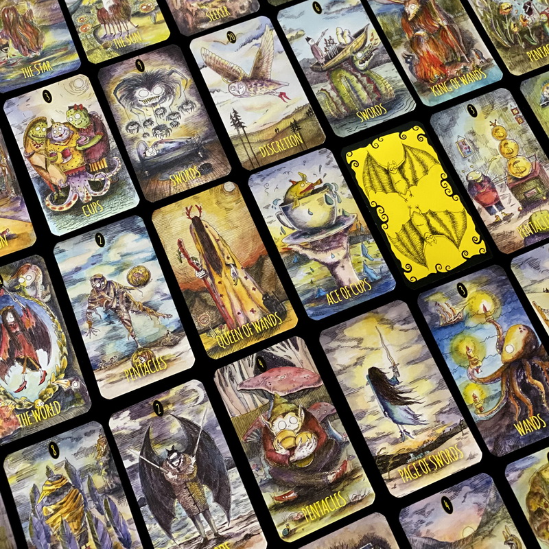 Shadows are said to be part of unlit corners of a space where creatures lurk and mystery dwells. They may also manifest on a personal or even global level to convey demons, fear, or anxieties. In a broader sense, shadows signify unresolved trauma and bring it to the forefront of our consciousness as aspects of ourselves that we can finally acknowledge—the skeletons, mummies, spiders, bats, crows, and ghosts we hide. This Tarot deck and accompanying guidebook provide you with the vital creative tools you need to access your shadows and reveal hidden truths. Alongside traditional Tarot symbolism and meanings, shadow aspects of our archetypal personalities are portrayed as 78 playful and quirky ink-and-watercolor creature cards that offer insight and guidance into our deepest selves. The book consists of a detailed introduction to shadows and shadow work, card meanings, reflection questions, and easy-to-follow spreads to help you discover, contemplate, and integrate previously unacknowledged aspects of your life and personality. For beginners as well as seasoned readers and shadow workers, discover imaginative solutions to everyday challenges as well as complex or concealed conditions. Is it time for you to stop hiding from your shadows?