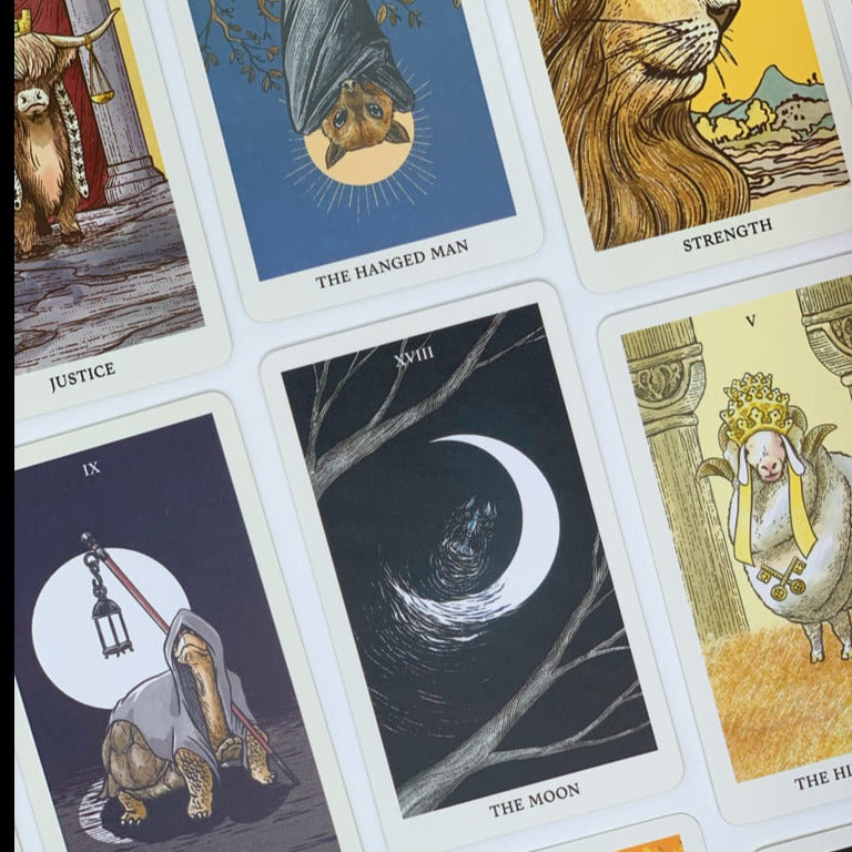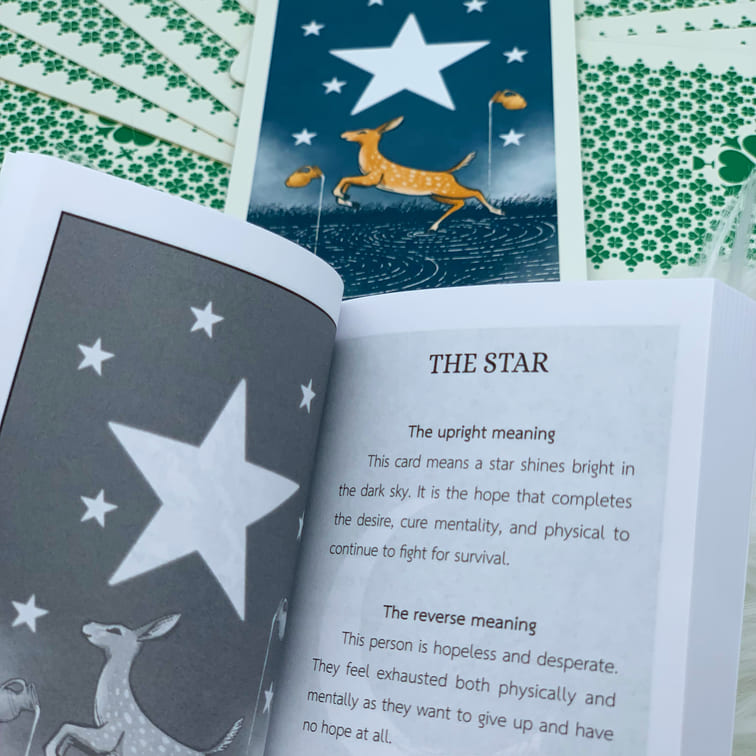 The Tarot Deck is created by Thai Artist Kanitsart S., author of the Stray Cat Tarot, Aibo Dog Tarot, Lunalapin Tarot, etc. The deck is a powerful Tarot Deck despite its cute Animal images, as those who own the deck claimed that they can sense a strong connection when reading the cards. Into the Wild Tarot & Oracle Deck is a powerful tool to do Psychic Reading/Tarot Card Reading/FortuneTelling.