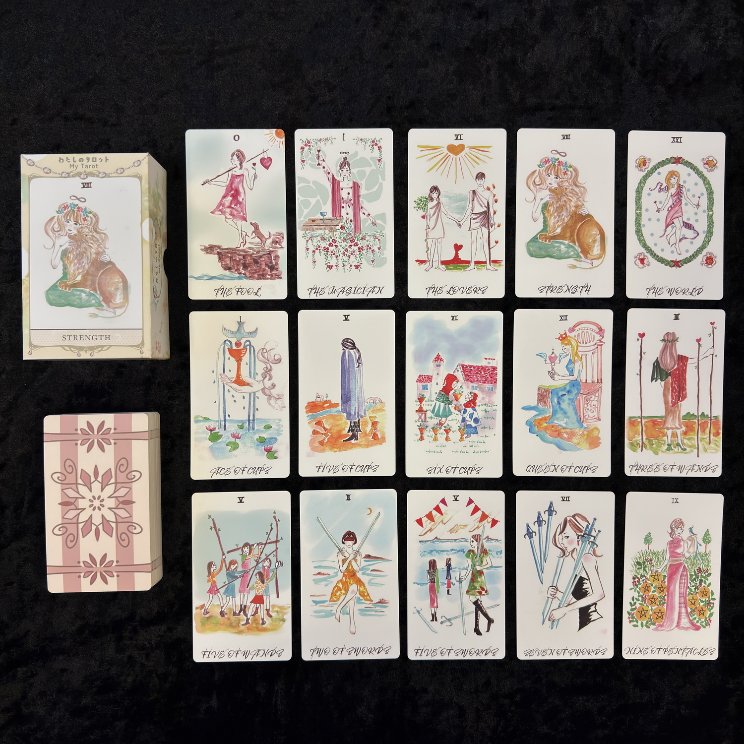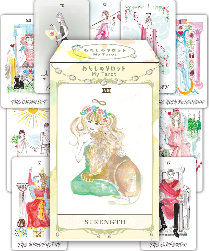 以偉特版本(Rider-Waite Tarot)為基礎繪製的圖像,讓任何人都能輕鬆上手,並且容易親近。柔和且溫潤的筆觸所描繪出的世界觀,光是觀看就能帶來療癒感,這就是《我的塔羅》——わたしのタロット。