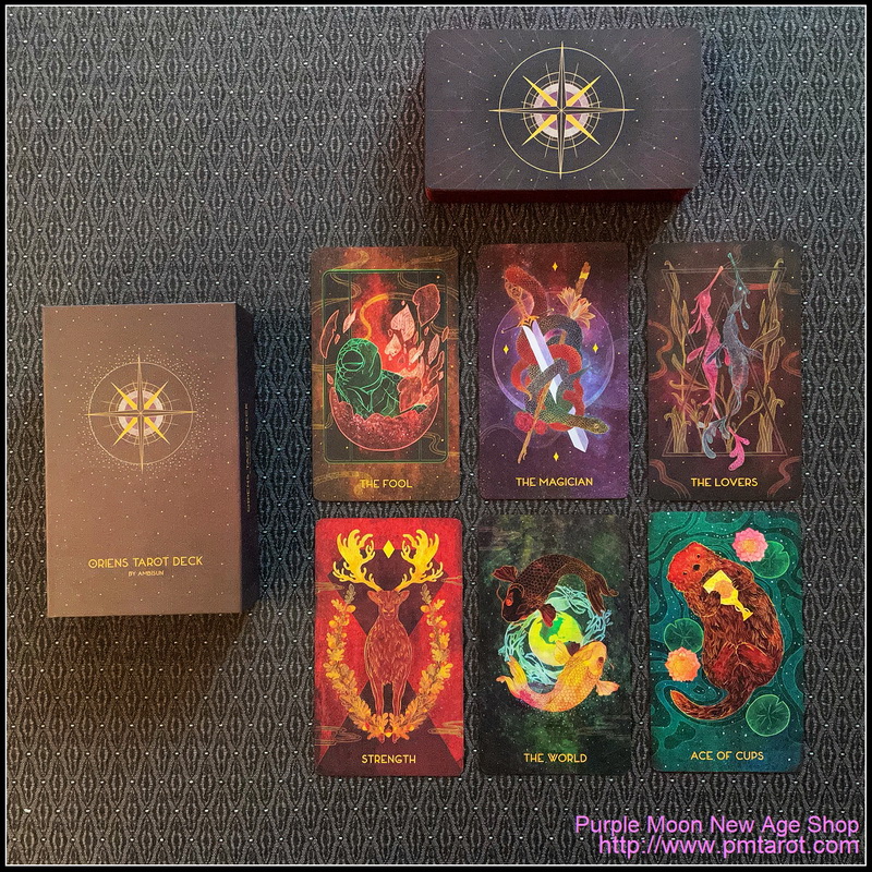 貨品介紹: The Oriens Tarot Deck is an animal-themed card deck created by Melbourne based designer and illustrator Ambi Sun. The deck uses its ornate imagery to reflect nature through mythical and ethereal means, allowing you to spiritually connect with the universe and yourself through the exquisite art of divination.