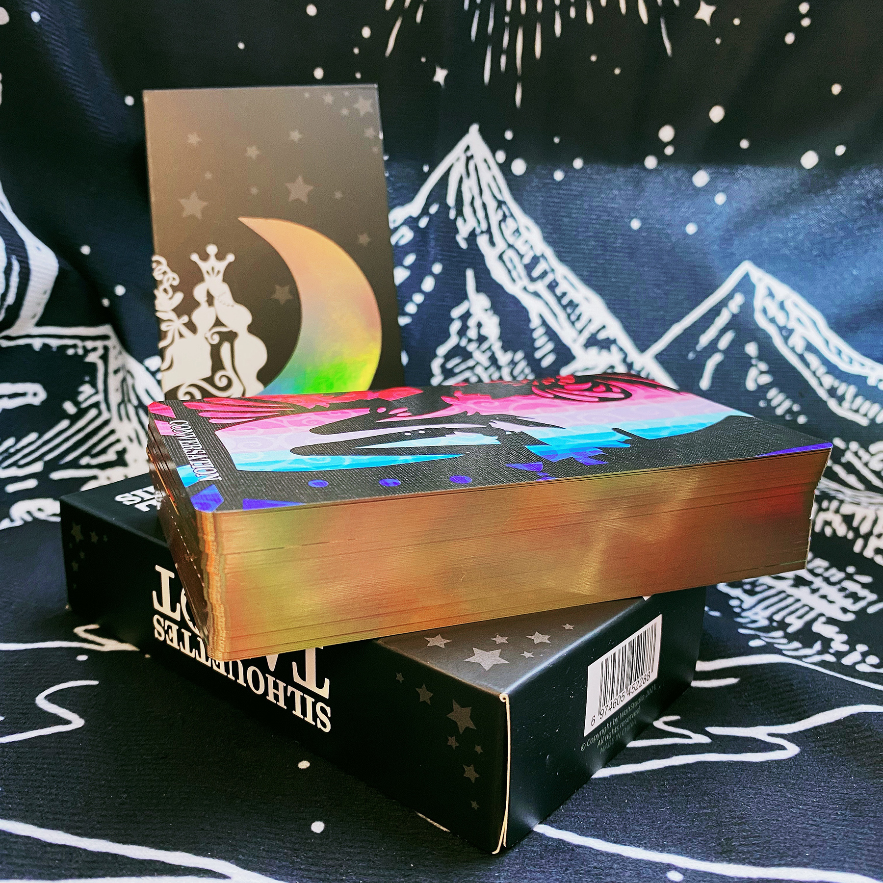 This deck has artfully integrated classic WS images and symbols with his own vision, aesthetic and perspective. Having both collection and practical value, Silhouettes Tarot meets the needs of everyone from general audience to amateurs to professionals.