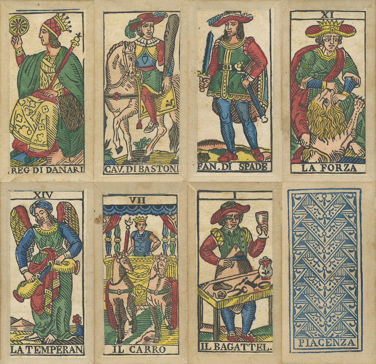 探索塔羅牌的歷史,我們可以找到一些鮮為人知的稀有傑作,例如「塔羅奇·皮亞琴蒂尼」。在西班牙統治米蘭期間,義大利的塔羅牌傳統轉移到倫巴第之外,並將後來長大的種子放在像這樣非常漂亮的塔羅牌中。