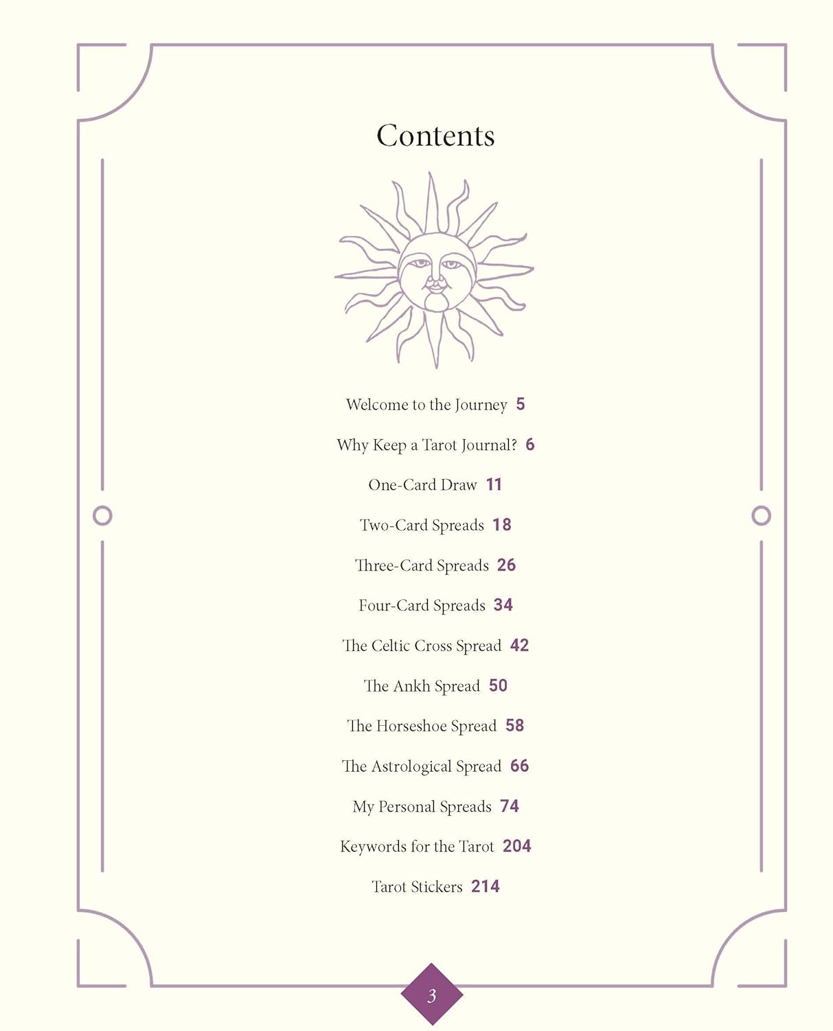 The Weiser Tarot Journal is a portable workbook with rounded corners and a lay-flat binding that makes journaling easy. It includes 24 sets of bound-in peel-off stickers of the Weiser Tarot images and 208 specially designed journal pages for you to record your own tarot readings.