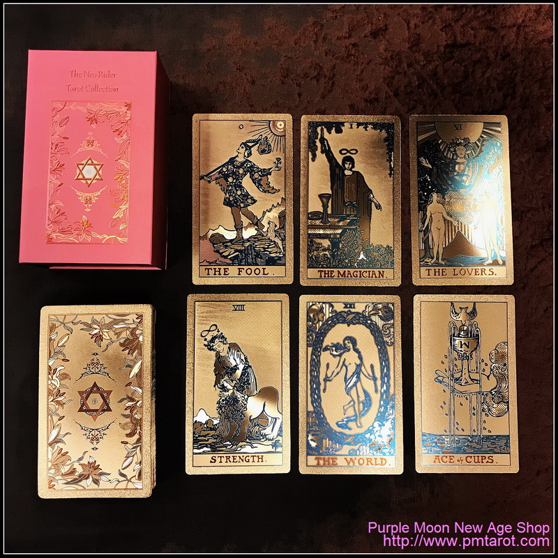 貨品介紹: 350gsm的藝術紙卡,高質感磁鐵翻蓋盒,防水塑料材質,金箔印刷。運用玫瑰金的牌卡,將原先偉特塔羅牌中的色調改為浪漫柔和的配色,暗黑轉靛藍,讓我們在看牌的時候,就不會感到這麼的害怕與擔憂了!